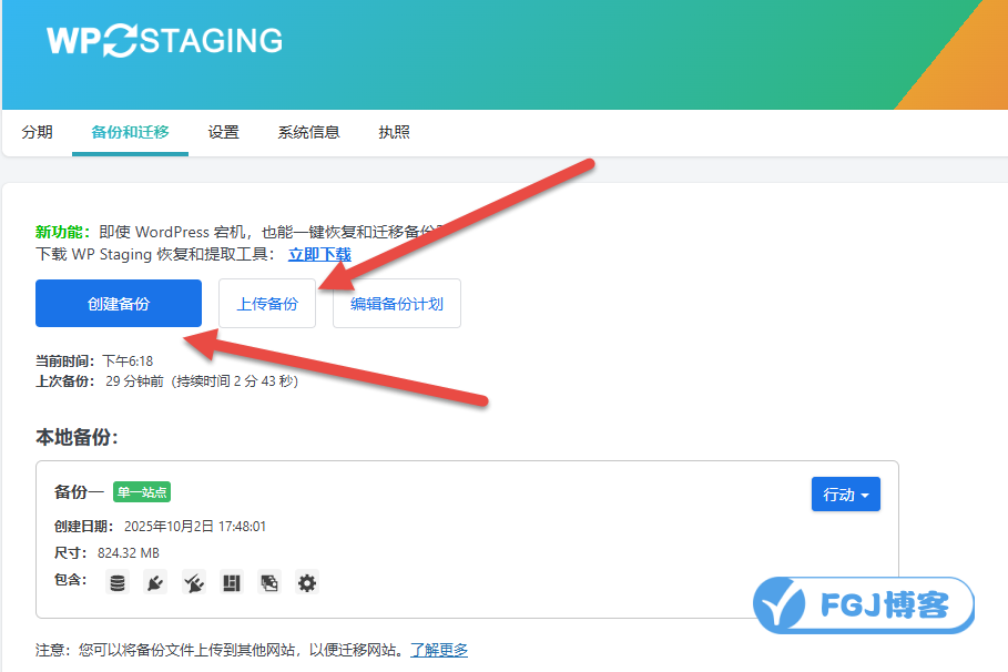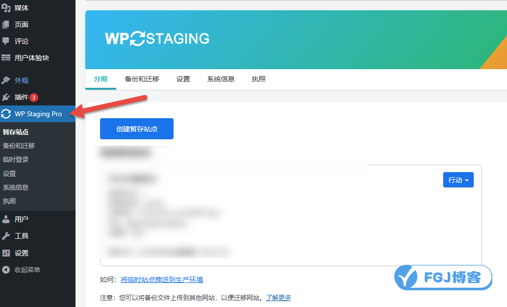 二、WP Staging Pro主要使用的就是暂存站点和备份迁移功能。