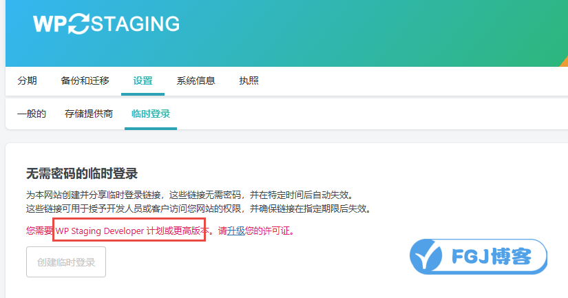 三、临时登录功能:主要用于个客户临时提供各类功能演示,比如你自己写的插件、主题等,这个主要面向开发人员。当然,这是更高级别的版本,Pro版本并不提供此功能。
